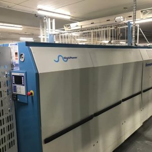 Two Lavatec TT757 GU tumbler dryers from 2005. These are gas heated, 200kgs capacity, pass-through dryers from 2005 and in excellent used condition. They can be supplied with an inclined loading conveyor and rear-discharge conveyor.