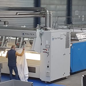 - One feeding operator in the centre of the feeder; one operator places a corner of the linen in both spreader clamps. The spreader clamps spread the linen and then return to the operator.